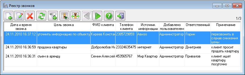 Данный модуль позволяет вести учет поступающих звонков от клиентов и дает